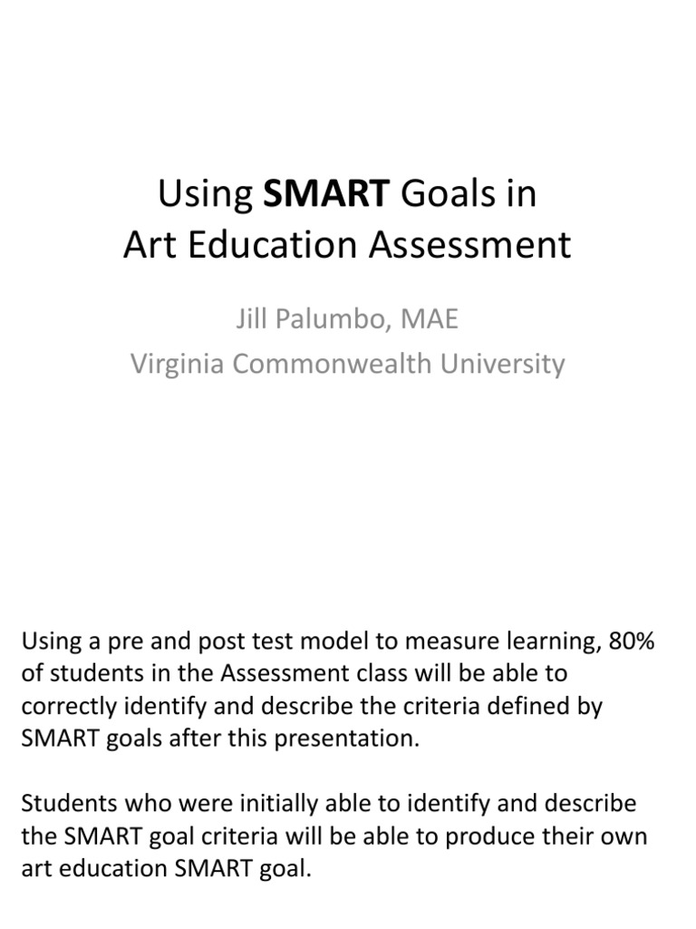 Find out what each characteristic means below, and how to write a smart goal that exemplifies them. Although the acronym smart generally stays the same, objectives and goals can differ. Department elementary secondary arts education 2nd grade music smart goal (accompanying data) 4th grade music smart goal with improvisation rubric and accompanying data elementary instrumental music example elementary art. The first known use of the term occurs in the november 1981 issue of management review by george t. Smart goalswe want to set ourselves up for success by creating the right type of goal.